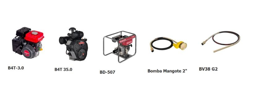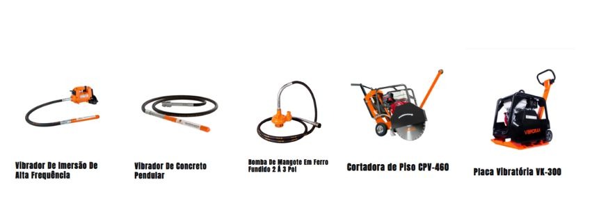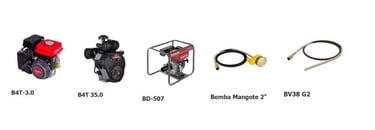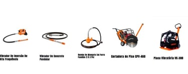 Vibradores, Bombas, Frisadores, Furadeiras, Betoneiras, Alternadores, Geradores e muito mais!